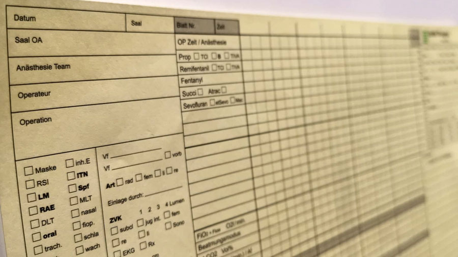 Surgeries are events with a high density of information. Nurses and anaesthetists make records of all information relevant to the patient's state and the course of the operation. They do this on paper, which has several shortcomings, such as errors due to illegible handwriting or entries with a faulty value. They do this on outdated forms that do not reflect today's requirements for operational reporting.