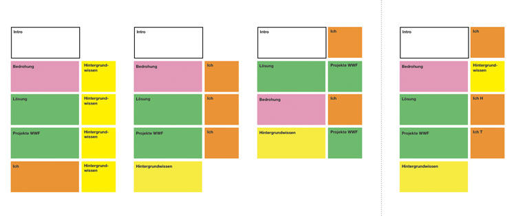 In the years before the relaunch, WWF Switzerland had produced a lot of content for their website. Yet a lot of it was outdated, wasn’t maintained, or didn’t meet the overall objectives of WWF anymore. („We don’t want to be a ‚Environmental Wikipedia‘!“)